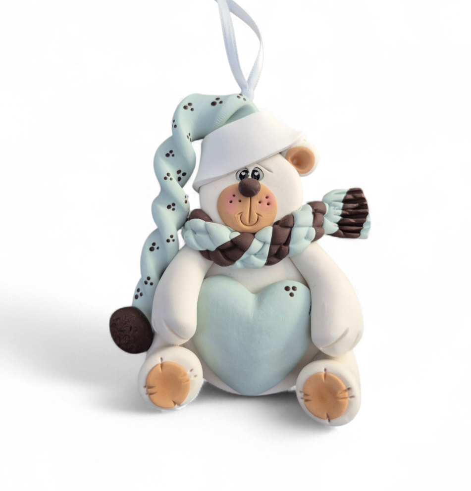 This ornament can be personalized with a name and the year using the hatband and heart